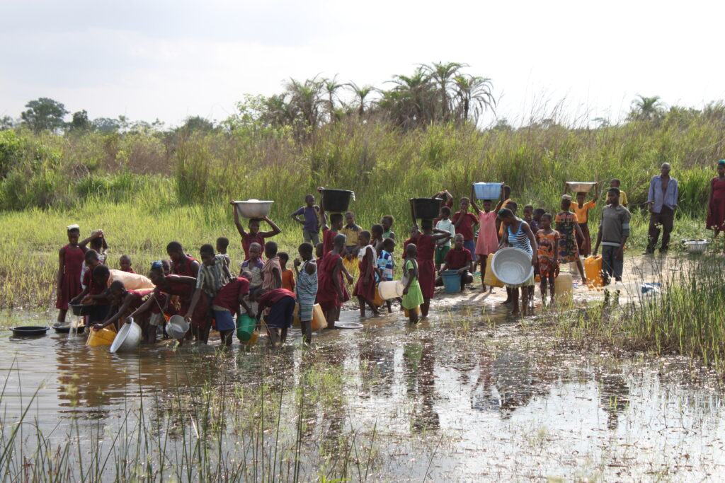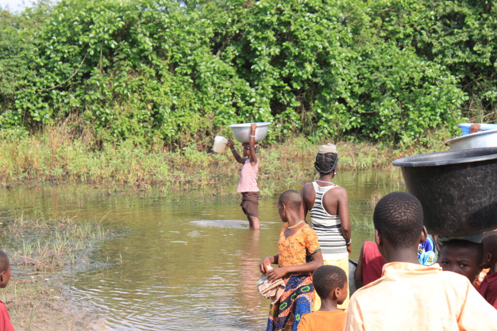 Here the children of Kpevenu-Tsati are collecting water from their local water hole in 2015.